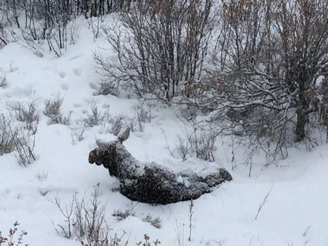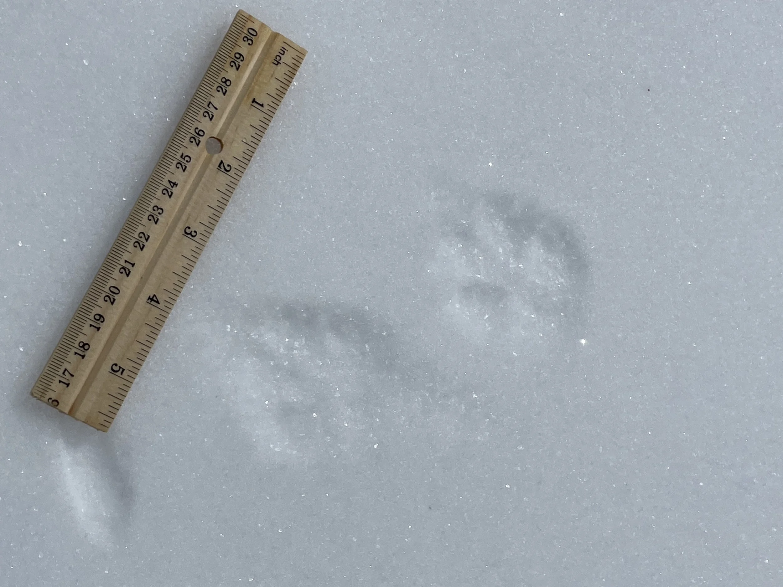 The snow belies the sudden awareness of the presence of so many animals that one does not usually see on summer days - the deer mouse, the snowshoe hare, the ermine, even the mighty moose. Those are the tracks made from the night before which remain for our inspection. Maybe we will see the story of a red fox hunting, or a Southern Red-backed Vole who came out of the warmth of the nest in the night. We could find the tracks of a bobcat (see below), or an elk working his way determinedly out of the forest to lower elevations before the snow becomes too deep.